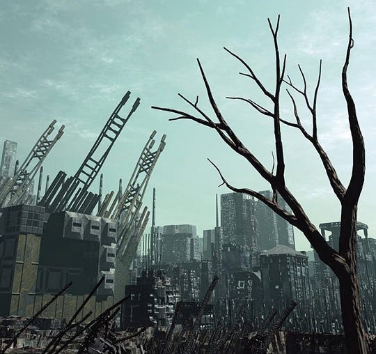 The years passed. The cities became overgrown. Those who ventured into the tangled mess of them reported that their level was reducing as the process of disintegration continued. Eventually there were only a few traces, then none.