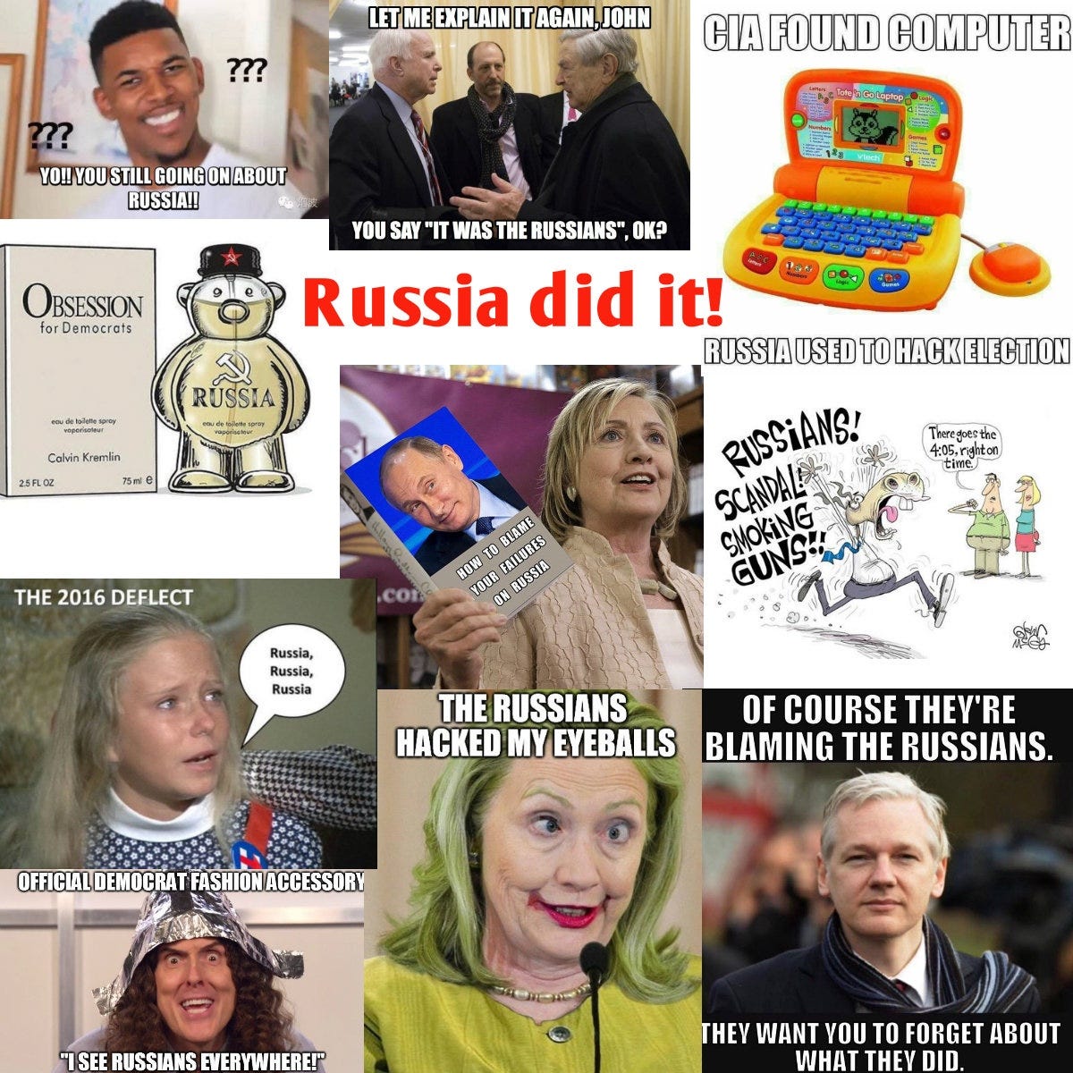 So we had the entire ‘Russiagate’ furor, a four-year Russia hate-a-thon where Putin and his cronies were responsible for just about every awful thing that ever happened to anyone anywhere. And especially for Hillary Clinton losing the 2016 presidential election to a fat clown non-politician who liked to run off at the mouth and deliver lies faster than she could. Though no solid evidence could be found to link the winning sociopath candidate and ‘the Russians’ enough of the lie stuck to make it useful. Oh, and those nefarious Russians had made $90k of Facebook ads SO VERY EFFECTIVE they outdid the $100m or so the Democrats spent. You might think they’d hire those admen geniuses wouldn’t you? And discover how it could be that almost none of the ads mentioned the presidential election AT ALL. Pure genius that.