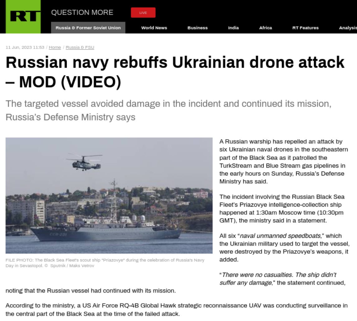 In late May, Russian reconnaissance ship Ivan Churs, which was on a similar mission to Priazovye, was attacked by three Ukrainian drones some 140km (86 miles) to the northeast of the Bosporus Strait. All of the incoming unmanned speed boats were also destroyed by the ship’s gun, according to the Defense Ministry.