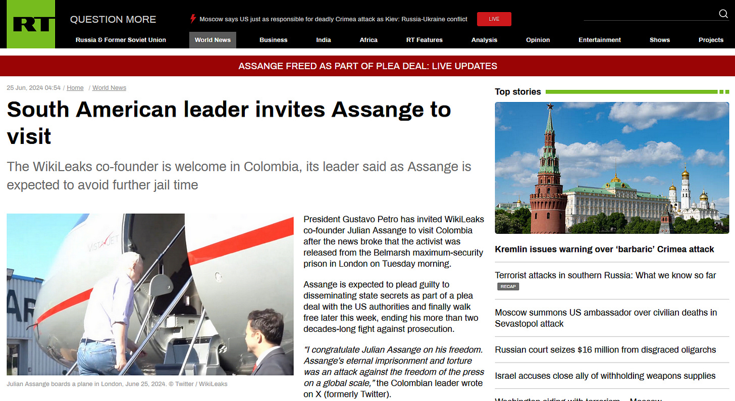 “Assange’s eternal imprisonment and torture was an attack against the freedom of the press on a global scale,” the Colombian leader wrote on X (formerly Twitter). “Denouncing the massacre of civilians in Iraq at the hands of the US was his ‘crime,’ and now the same massacre is being repeated in Gaza.”