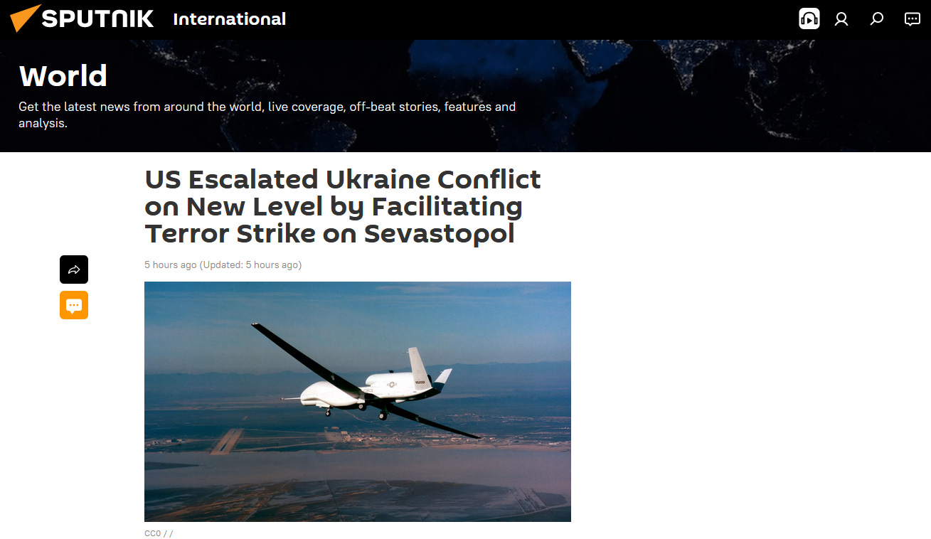 A US RQ-4 Global Hawk drone was in the airspace over the Black Sea southeast of Crimea at the time of the Ukrainian Armed Forces' attack on Sevastopol using cluster-armed ATACMS missiles.