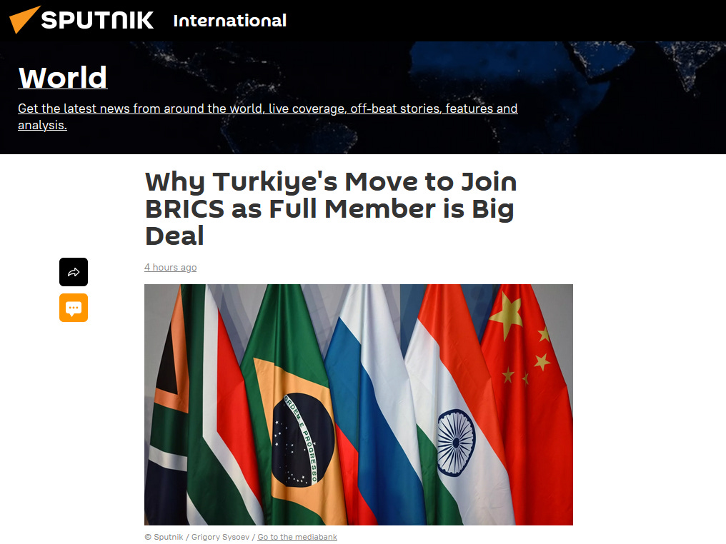 Ankara’s considerable clout in the Middle Eastern affairs, where it has long been one of the top players, and its influence on the African continent may also benefit Turkiye’s future fellow members in the BRICS.