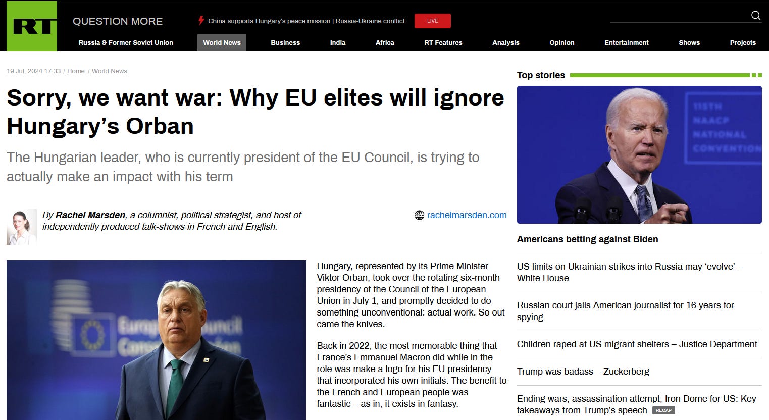 Sorry, we want war: Why EU elites will ignore Hungary’s Orban.