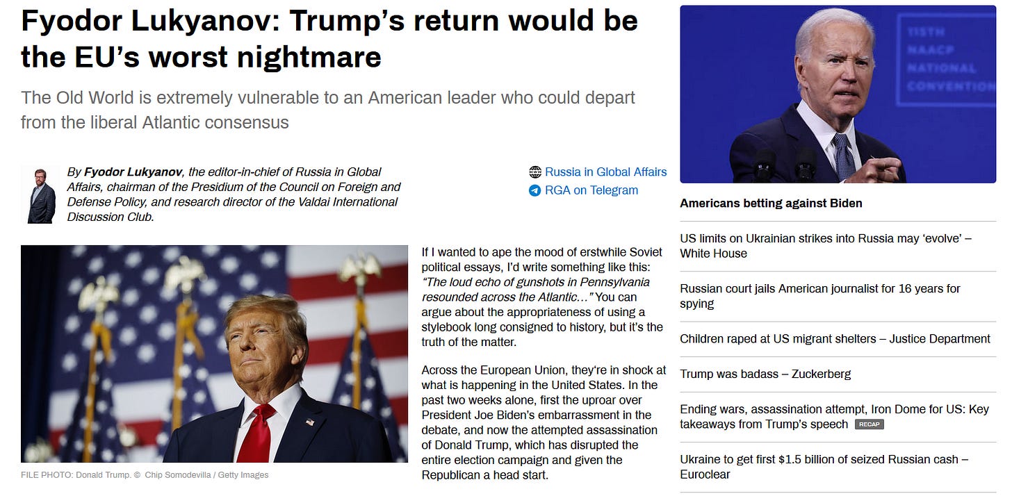 Fyodor Lukyanov: Trump’s return would be the EU’s worst nightmare.