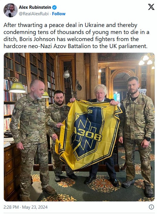 Fedosiuk, Serbov and Vernygora also posed with former British Prime Minister Boris Johnson, who famously visited Kiev in April 2022 to torpedo any possibility of a peace deal between Ukraine and Russia.