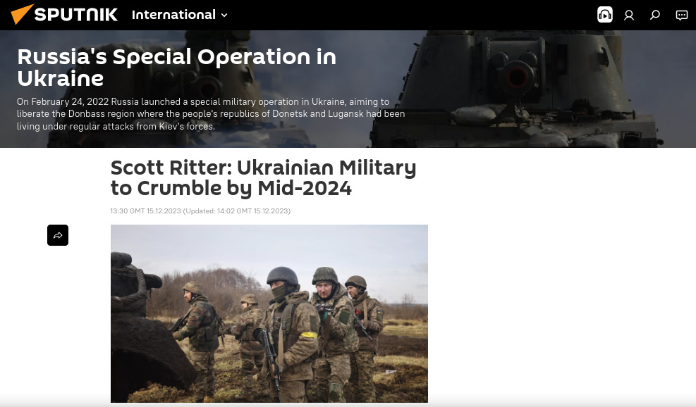 Scott Ritter: Ukrainian Military to Crumble by Mid-2024.