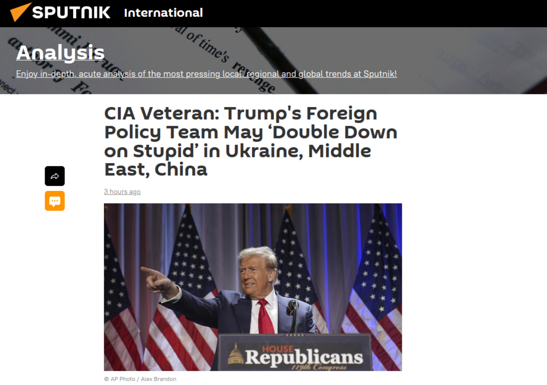 CIA Veteran: Trump's Foreign Policy Team May ‘Double Down on Stupid’ in Ukraine, Middle East, China.