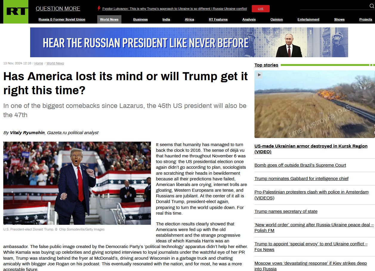 Trump will insist on trying to end the Ukraine war but will fail. This war must not end in anything but a total Russian victory. Nothing less will do in order to ensure Russia's future security.