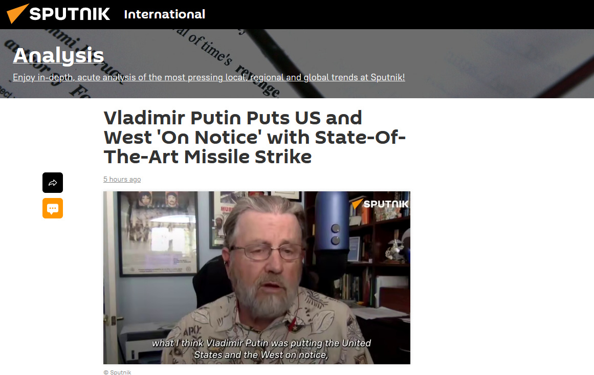 According to him, the recent missile strike against the city of Dnepropetrovsk in Ukraine was President Putin’s way of sending a message to the West and to the United States who earlier “unilaterally abrogated” the INF Treaty.