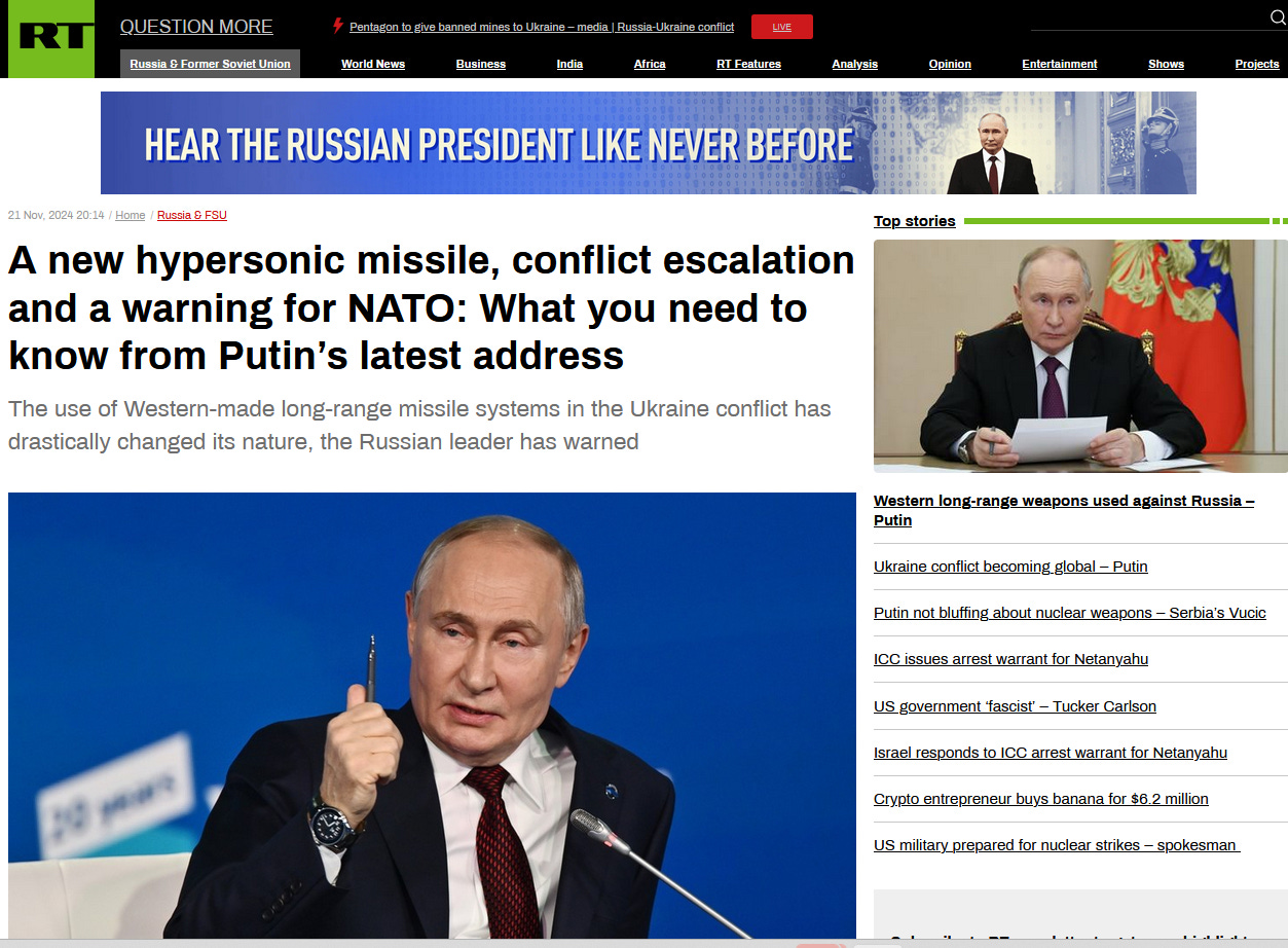 Putin’s address comes after recent Ukrainian strikes inside Russia’s pre-2014 borders using Western-made long-range missiles, which mark a significant escalation of the conflict. His comments reflect growing tensions between Russia and the NATO countries, and signal the dangers of a potential shift toward a broader confrontation.