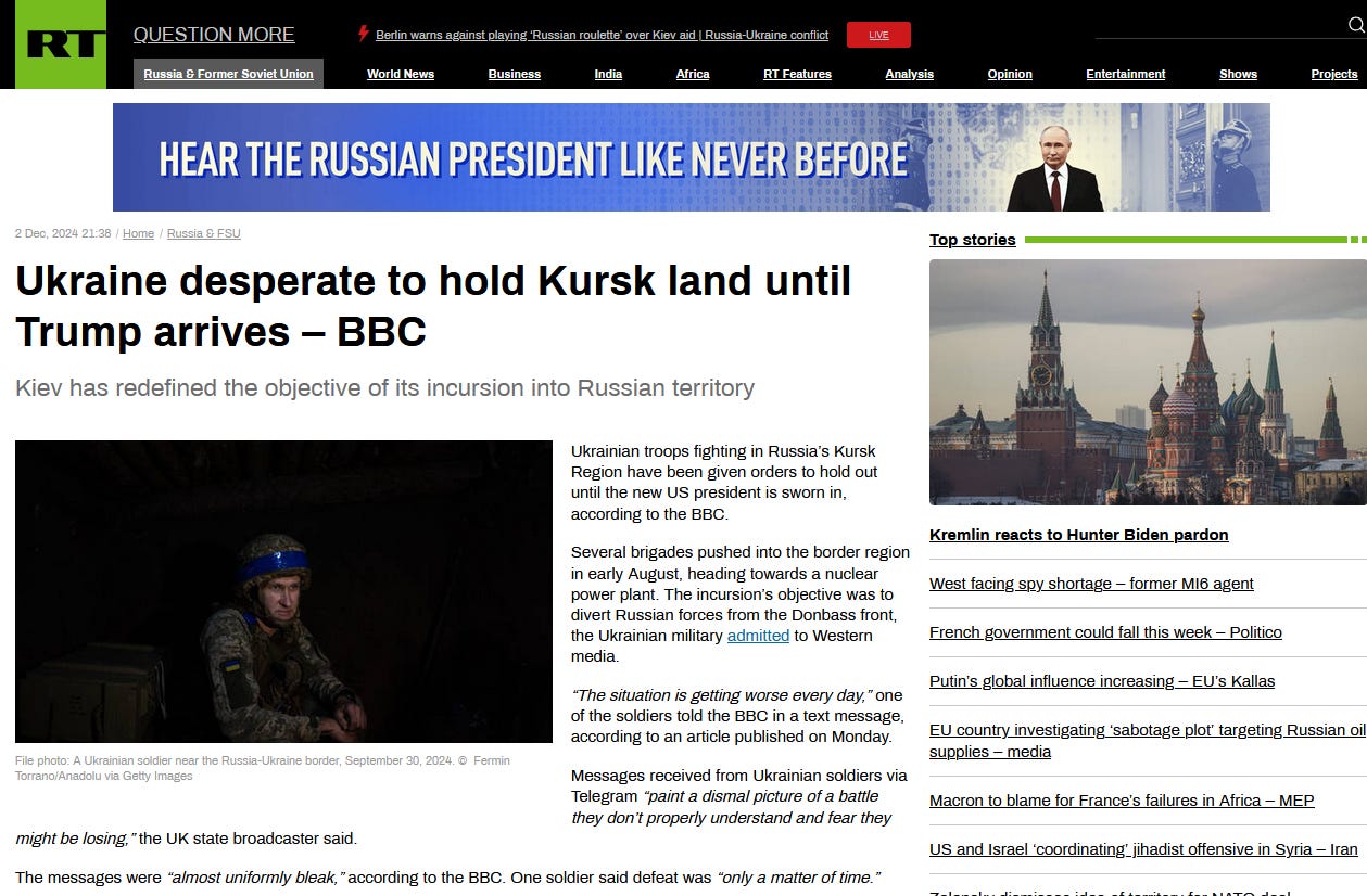 “The main task facing us is to hold the maximum territory until Trump’s inauguration and the start of negotiations,” said one soldier, identified as Pavel. “In order to exchange it for something later. No-one knows what.”
