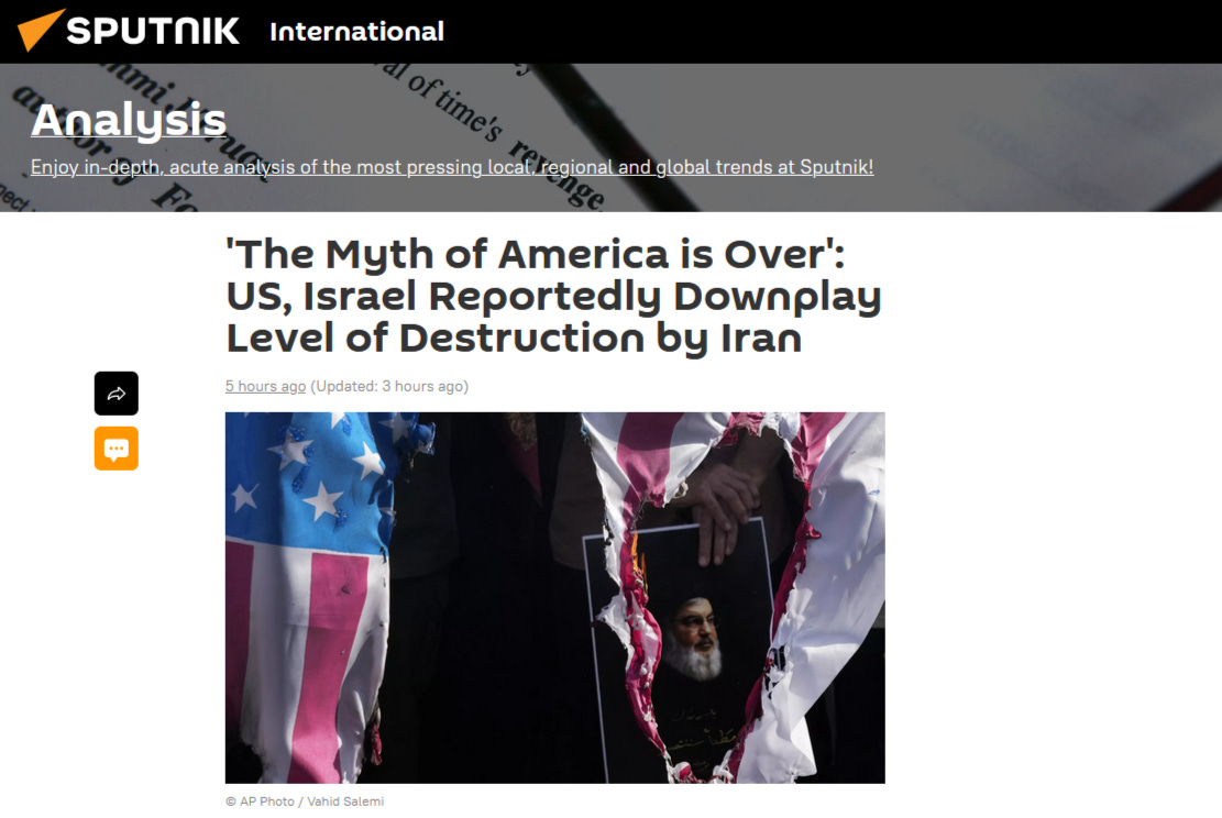 'The Myth of America is Over': US, Israel Reportedly Downplay Level of Destruction by Iran.
