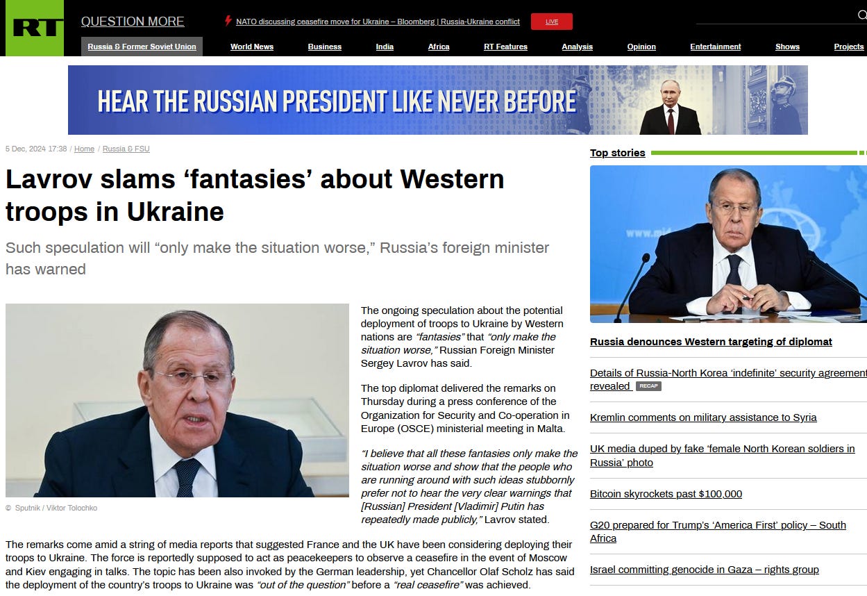 The ongoing speculation about the potential deployment of troops to Ukraine by Western nations are “fantasies” that “only make the situation worse,” Russian Foreign Minister Sergey Lavrov has said.