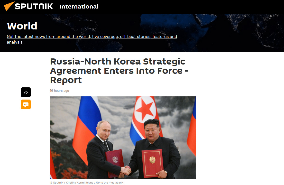 Russia-North Korea Strategic Agreement Enters Into Force - Report.