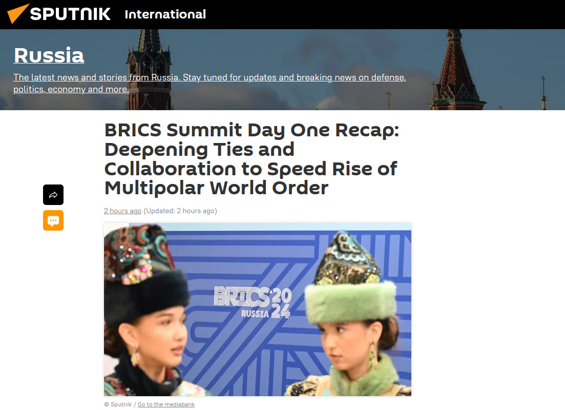 On this, the second day of the 16th BRICS summit in Kazan, Tatarstan, Russia we can see that hope for a better world does exist. Stability, tolerance, cooperation, dialogue and the search for a route to a civilization we can be proud of are ongoing within the ever-expanding BRICS group. On this second day of the summit its members are seeking that way forward to the better future we all deserve and must find for the sake of all who come after us.
