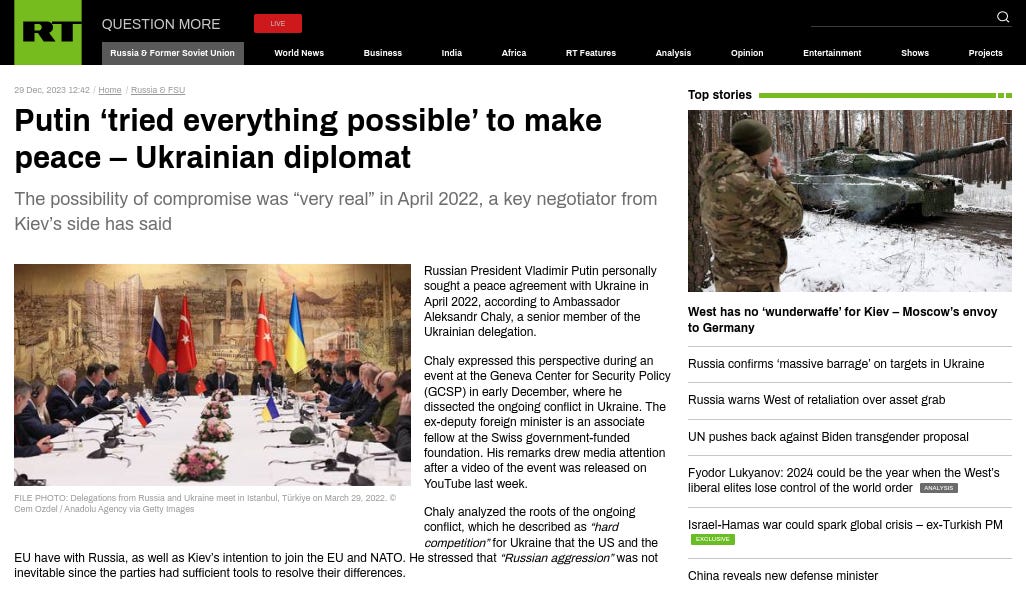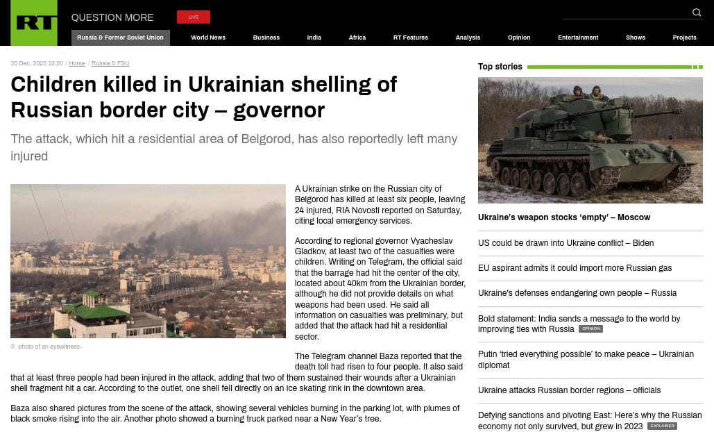 Articles from RT (Russia Today) & Sputnik International - 30th December 2023:
