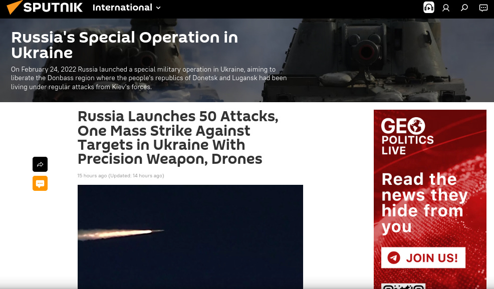 Russia Launches 50 Attacks, One Mass Strike Against Targets in Ukraine With Precision Weapon, Drones.