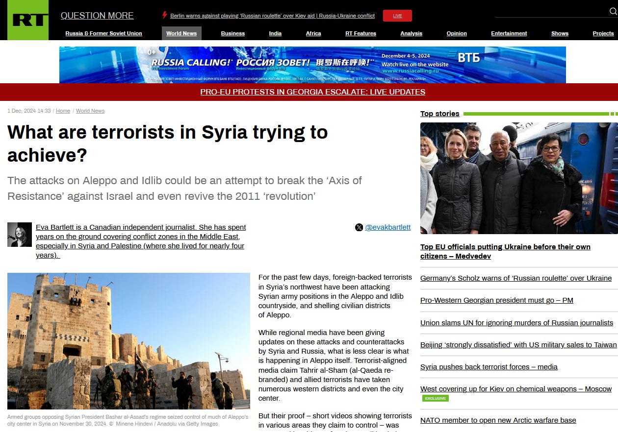These attacks, apparently supported by Türkiye, the US, and Israel, mark the latest effort to destabilize Syria and weaken the ‘Axis of Resistance’ against Israel. It is of course notable that these attacks commenced just after the so-called ceasefire between the Lebanese Resistance, Hezbollah, and Israel (which began violating the ceasefire almost immediately, as Israel has done with virtually every ceasefire in the past).