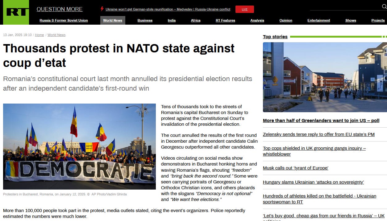 The annulment came amid accusations that Moscow had assisted Georgescu’s campaign, which have been dismissed as “absolutely groundless” by Russian Foreign Ministry spokeswoman Maria Zakharova. She noted that the Romanian elections were carried out amid “an unprecedented surge of anti-Russian hysteria” that is set “to influence the consciousness and will of the country’s citizens.”