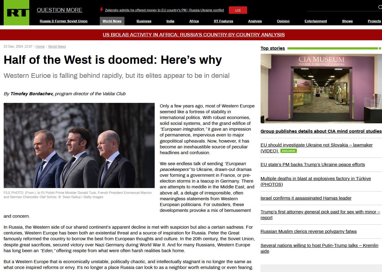 For Russia, Western Europe’s intellectual and moral stagnation presents both challenges and questions. Historically, the EU was a neighbor that inspired reforms and shaped foreign policy strategies. But how does one engage with a declining power that refuses to acknowledge its own fall? And if the bloc is no longer a meaningful counterpart, who will become Russia’s new “unifying other”?