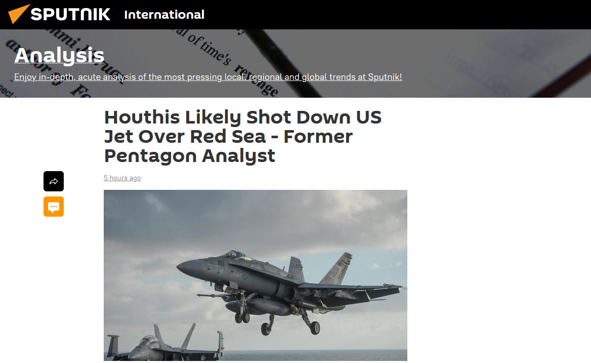 Houthis Likely Shot Down US Jet Over Red Sea - Former Pentagon Analyst.