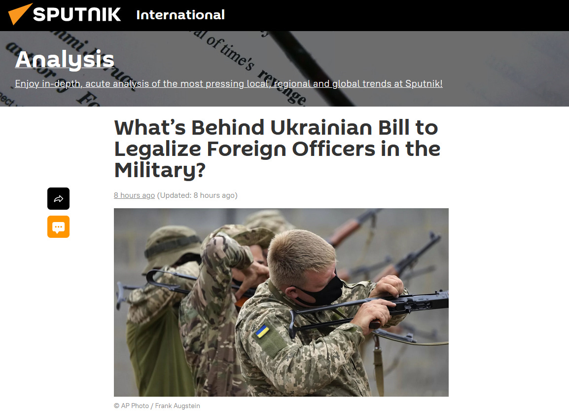 Actually, "they are legalizing the presence of foreigners in the Ukrainian army. All those mercenaries are now becoming army officers, something that helps the Kiev regime disguise its mercenary activities," Litovkin pointed out.