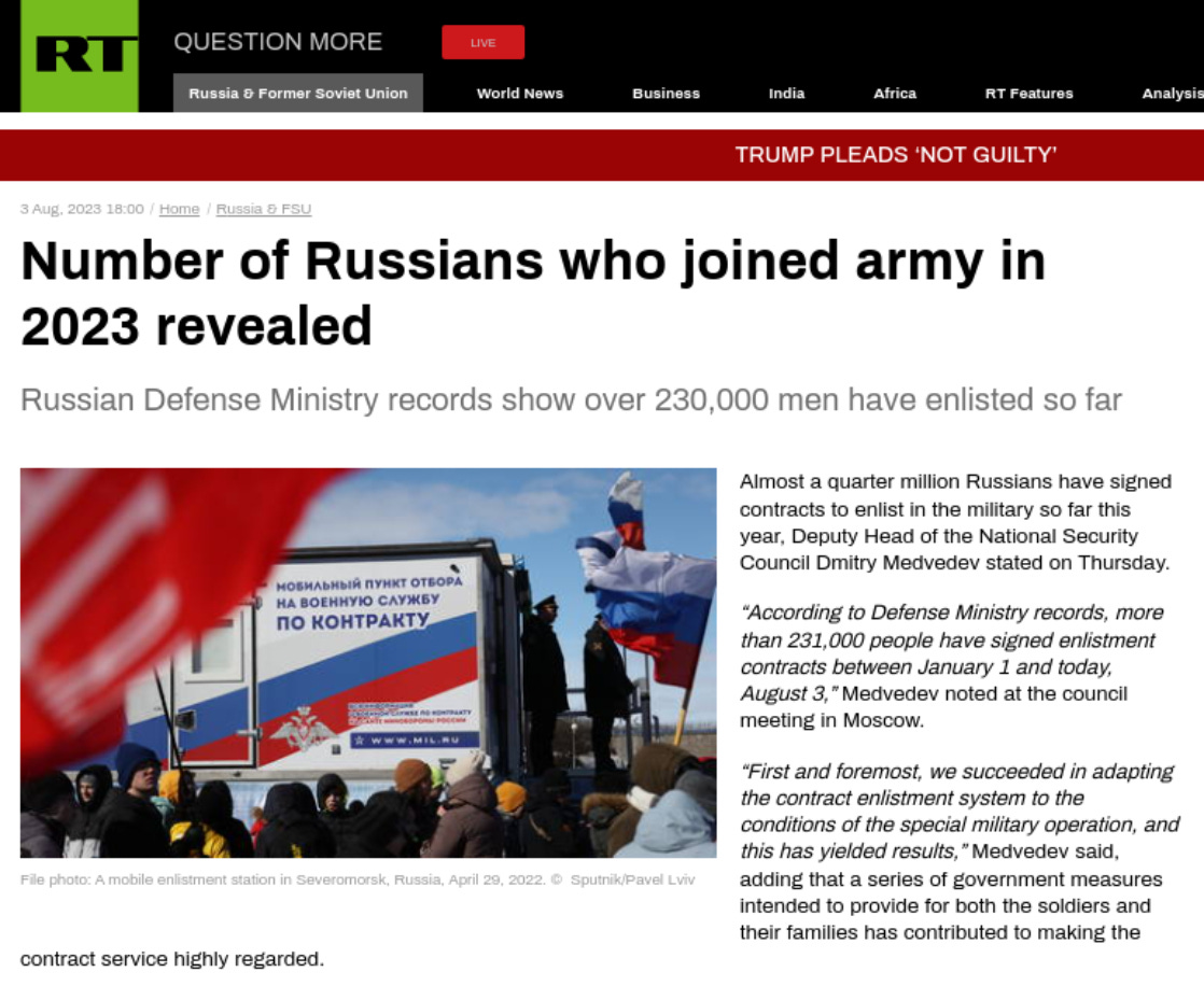Article published by Russia Today (RT) - 4th August 2023: