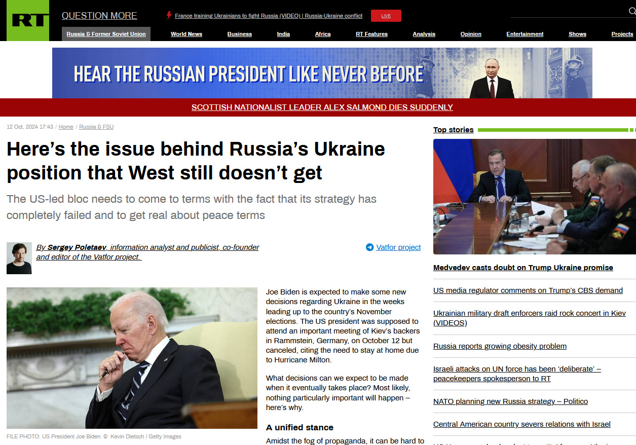 Joe Biden is expected to make some new decisions regarding Ukraine in the weeks leading up to the country’s November elections. The US president was supposed to attend an important meeting of Kiev’s backers in Rammstein, Germany, on October 12 but canceled, citing the need to stay at home due to Hurricane Milton.