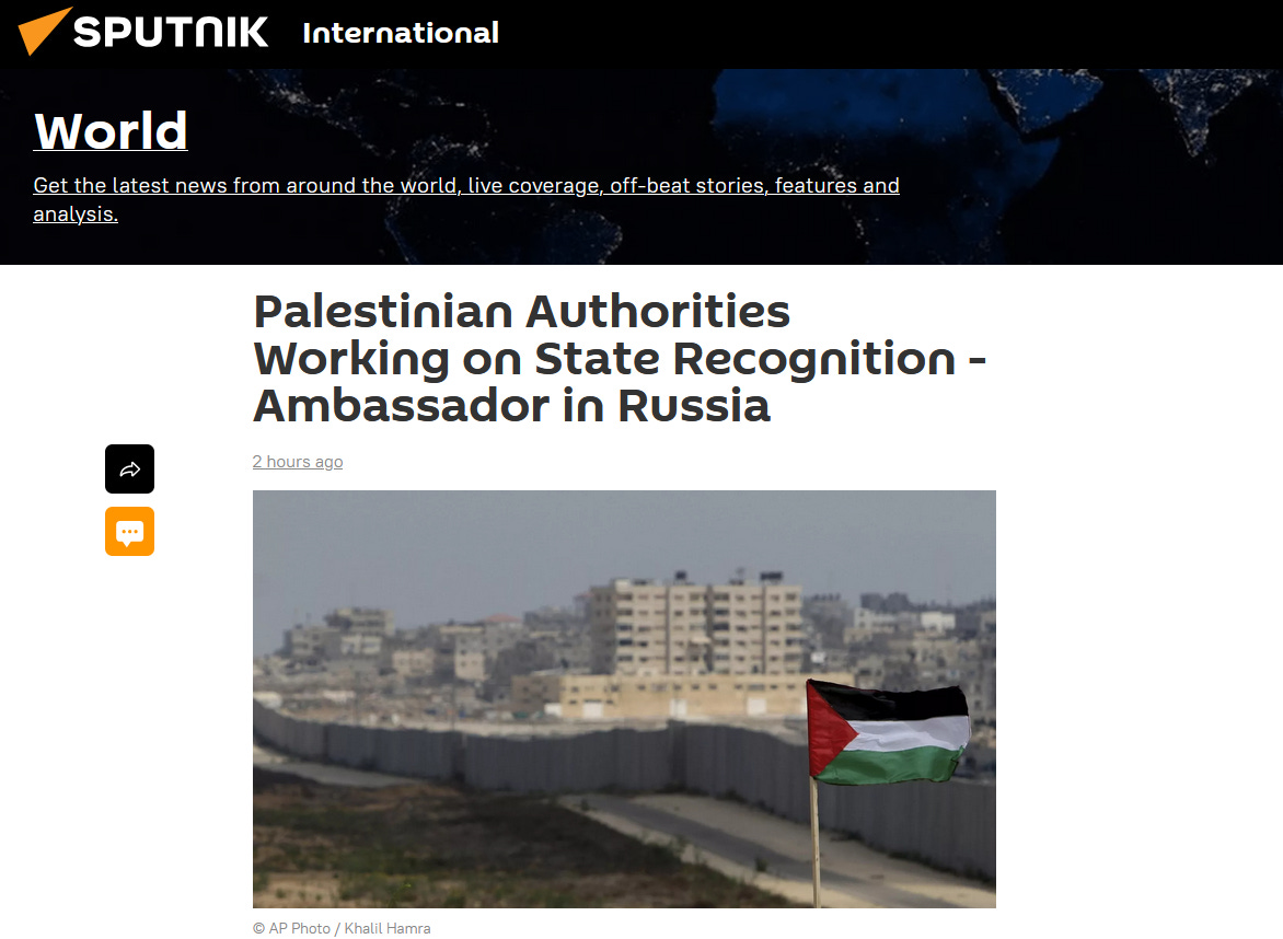 Palestinian Authorities Working on State Recognition - Ambassador in Russia.
