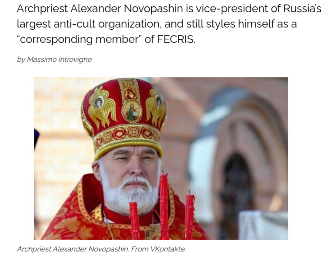 Archpriest Alexander Novopashin is vice-president of Russia’s largest anti-cult organization, and still styles himself as a “corresponding member” of FECRIS.