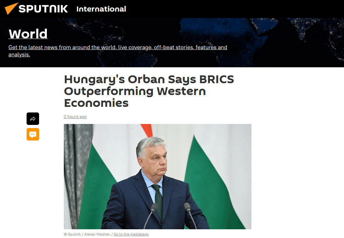 Hungary's Orban Says BRICS Outperforming Western Economies.
