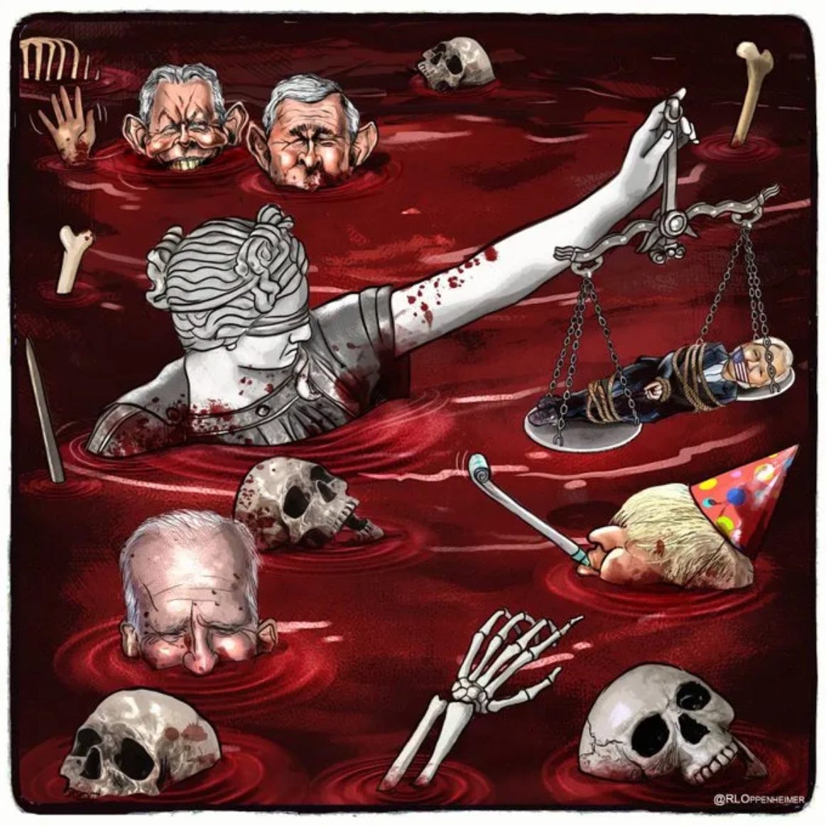 The egotistical, arrogant, interfering and murderous empire of the West is about to die by its own hand. Its leaders will fall like ninepins if there is any justice combined with a goodly level of insight that sees through the spin designed to gloss over their idiocy that brought about defeat. There will be no true escape for those scurrying around looking for shelter. They may burrow themselves away in grotesque fantasies mirroring the actions of George W. Bush after his comeuppance was avoided along with that of Anthony Blair. But the inner awareness of their guilt cannot so easily be avoided, nor can the catastrophic consequences for their nations.