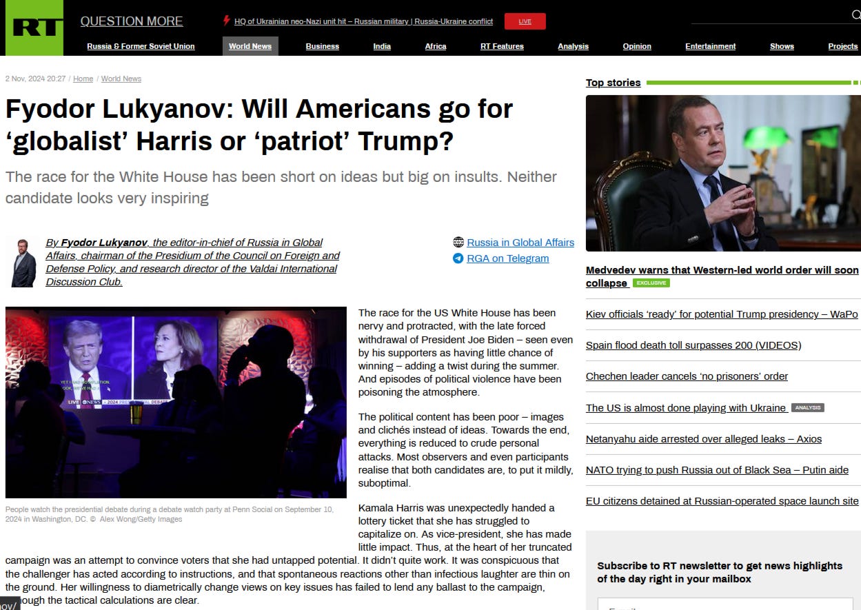 Fyodor Lukyanov: Will Americans go for ‘globalist’ Harris or ‘patriot’ Trump?