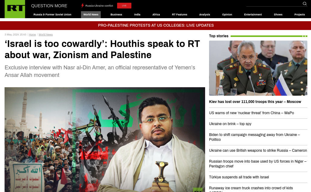 ‘Israel is too cowardly’: Houthis speak to RT about war, Zionism and Palestine.