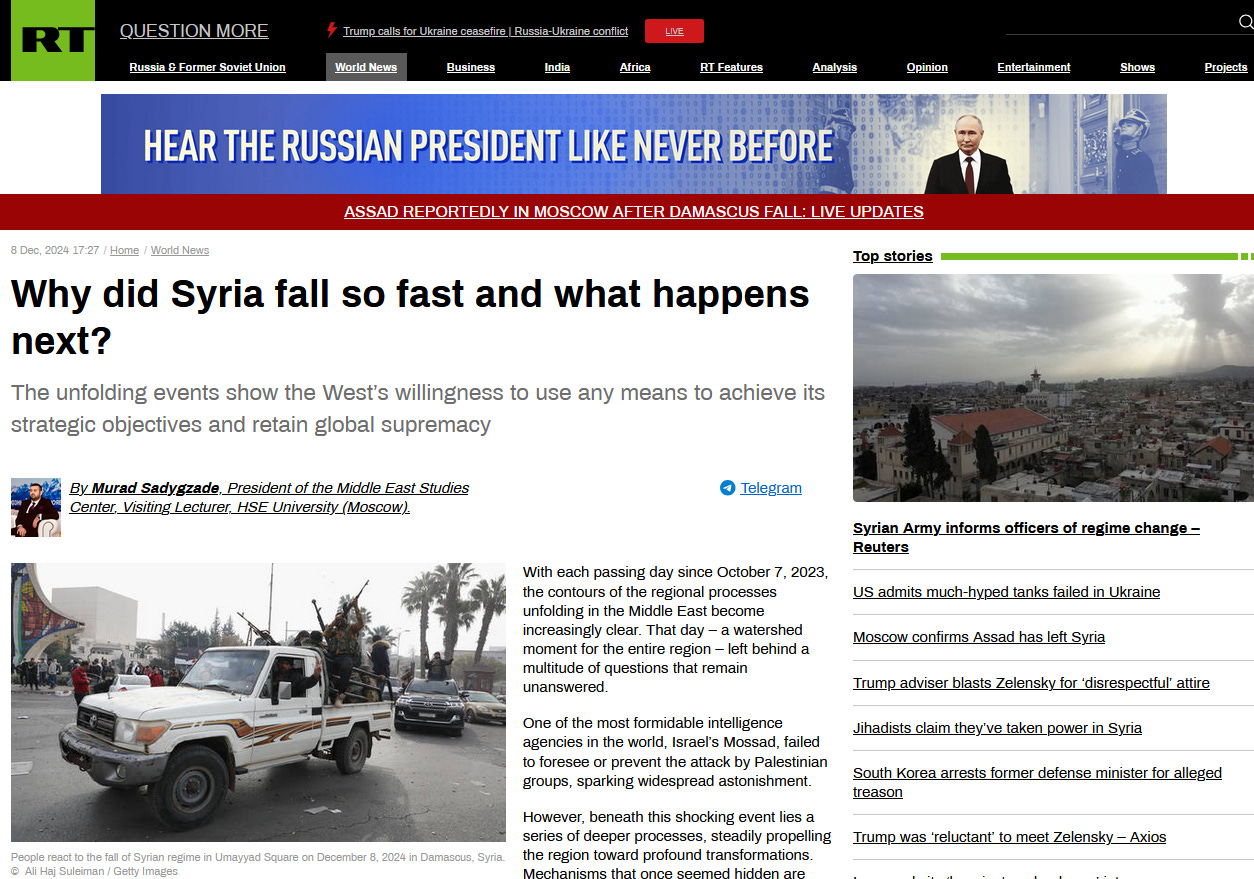 Western nations, spearheaded by Washington and London, have long expressed dissatisfaction with Moscow’s growing influence in the region over the past decade. Acting as a key ally of Assad and forging successful relationships with several Middle Eastern states, Russia had emerged as a critical player in this strategically vital area. Moscow’s achievements in both the military and diplomatic spheres, including its role in conflict resolution and cooperation with nations such as Türkiye, Iran, and Gulf states, deeply unsettled the West. The undermining of the Syrian regime was thus aimed at weakening Russia’s regional influence, stripping it of a key ally, and potentially ousting its military presence from Syria. While this could be seen as a blow to Moscow, it would be inaccurate to suggest that this significantly alters Russia’s broader Middle Eastern strategy or its relations with regional partners.
