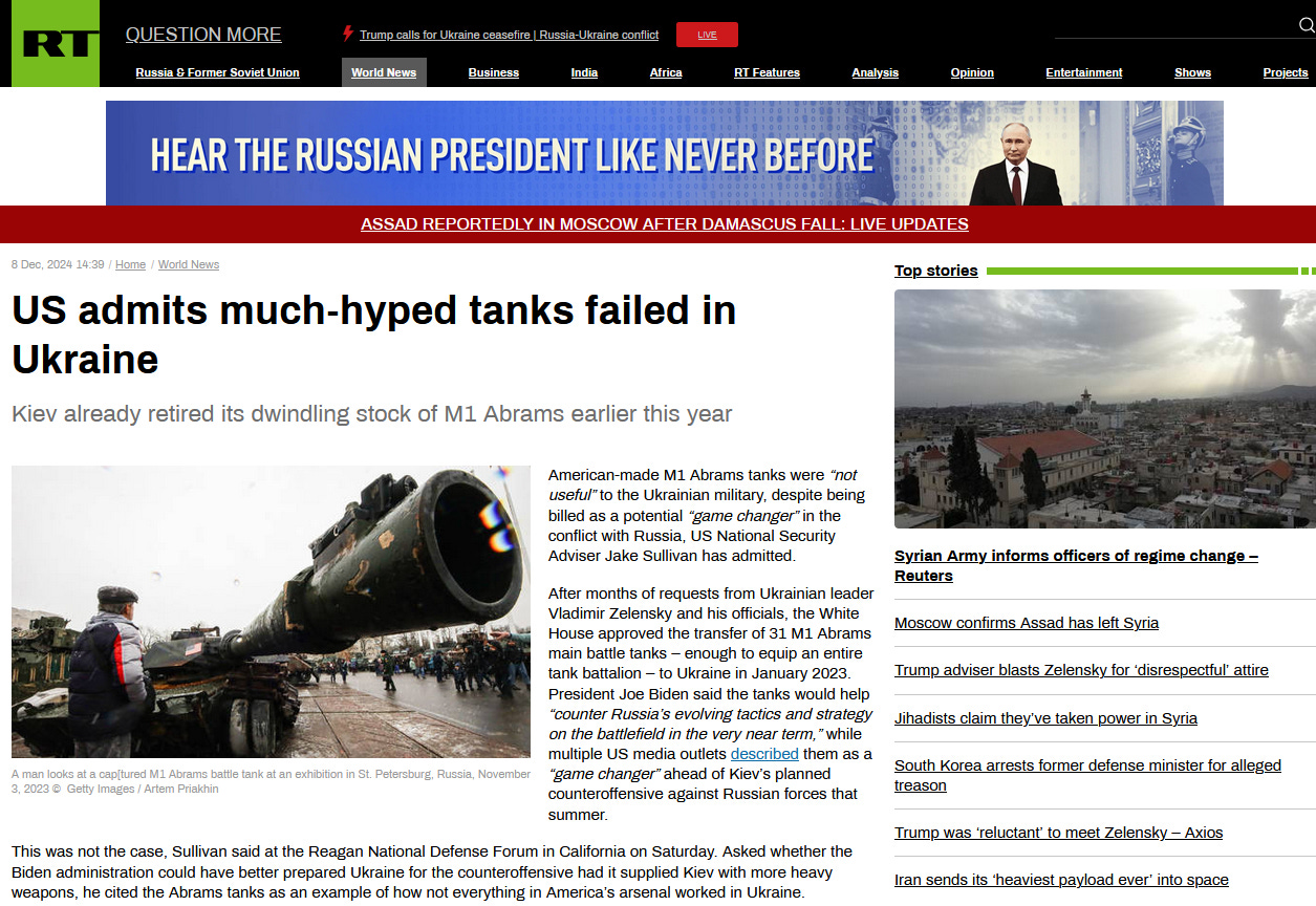 US admits much-hyped tanks failed in Ukraine.