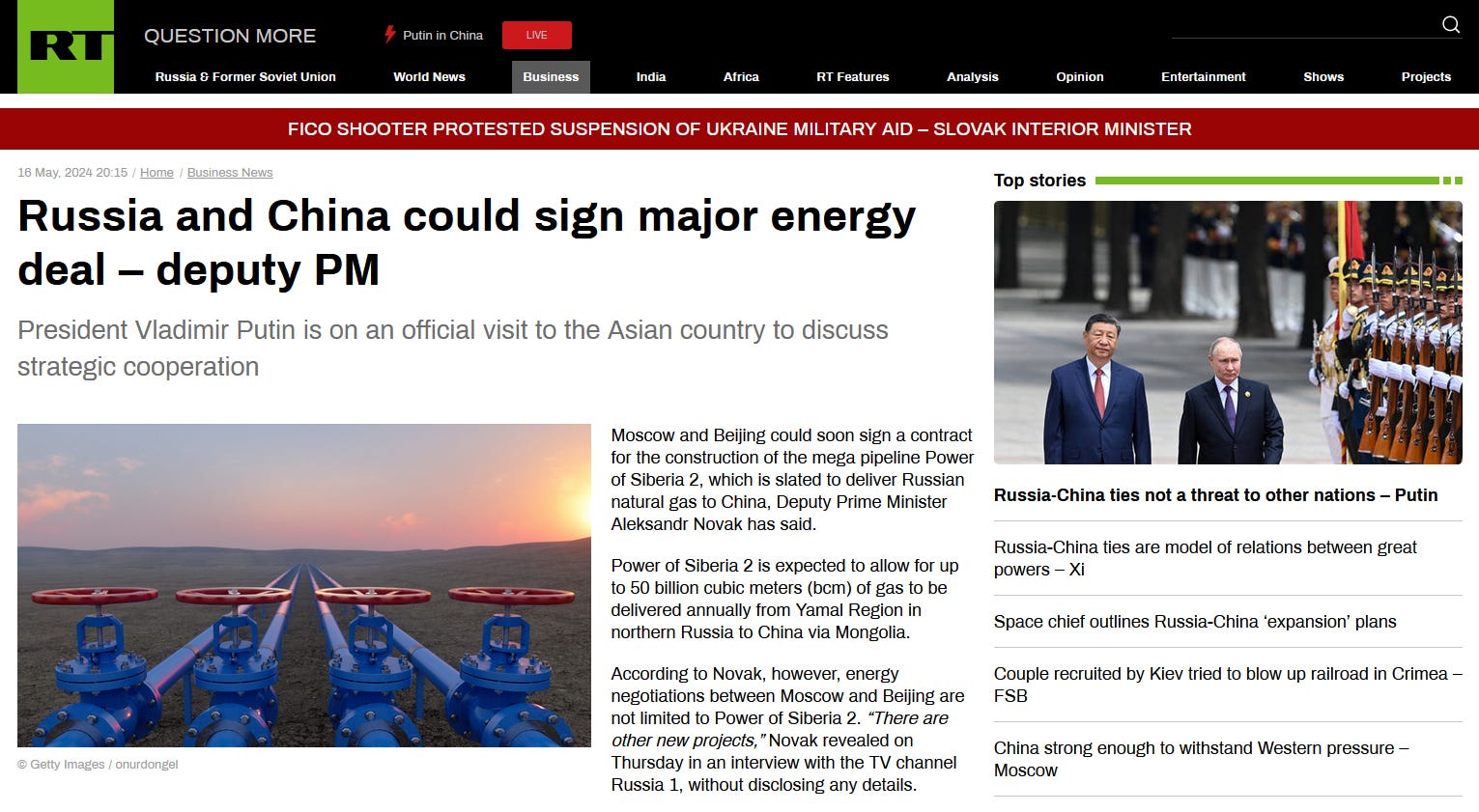 According to Novak, however, energy negotiations between Moscow and Beijing are not limited to Power of Siberia 2. “There are other new projects,” Novak revealed on Thursday in an interview with the TV channel Russia 1, without disclosing any details.