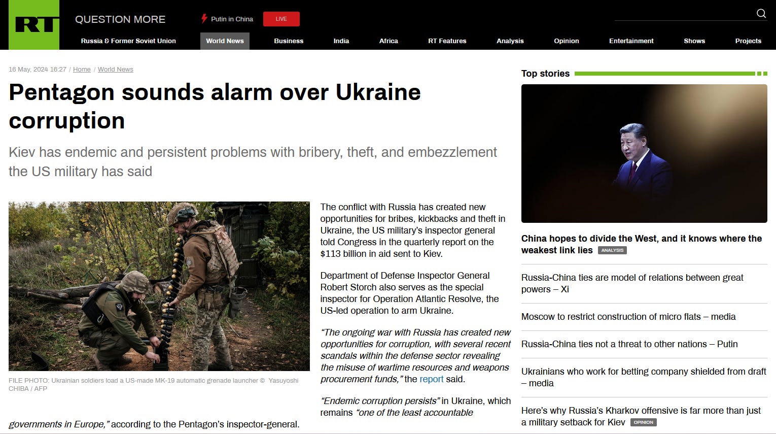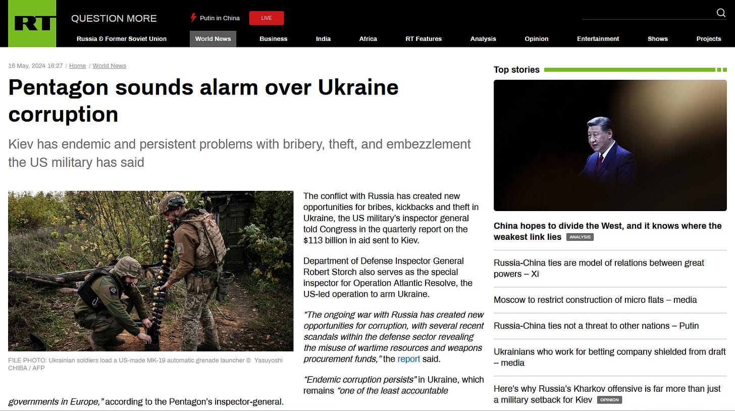 The conflict with Russia has created new opportunities for bribes, kickbacks and theft in Ukraine, the US military’s inspector general told Congress in the quarterly report on the $113 billion in aid sent to Kiev.
