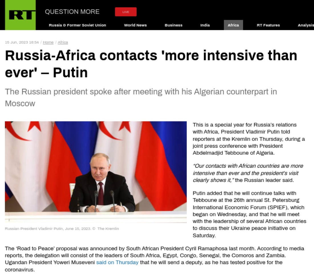 Article published by Russia Today (RT) - 16th June 2023:
