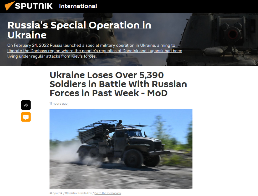 Ukraine Loses Over 5,390 Soldiers in Battle With Russian Forces in Past Week - MoD.