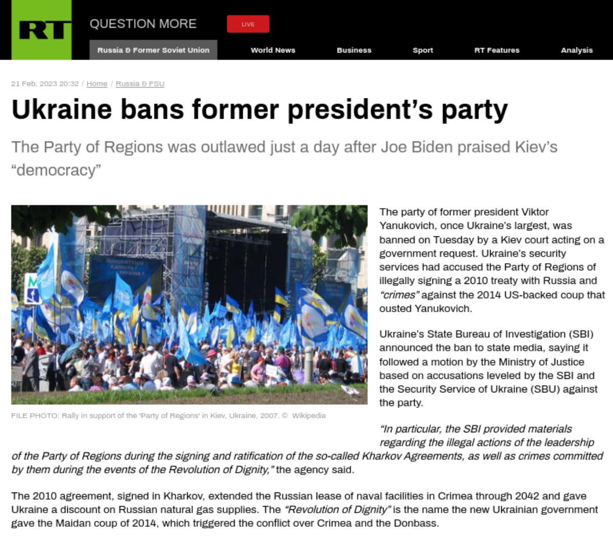 Article from Russia Today (RT) - 22nd February 2023:
