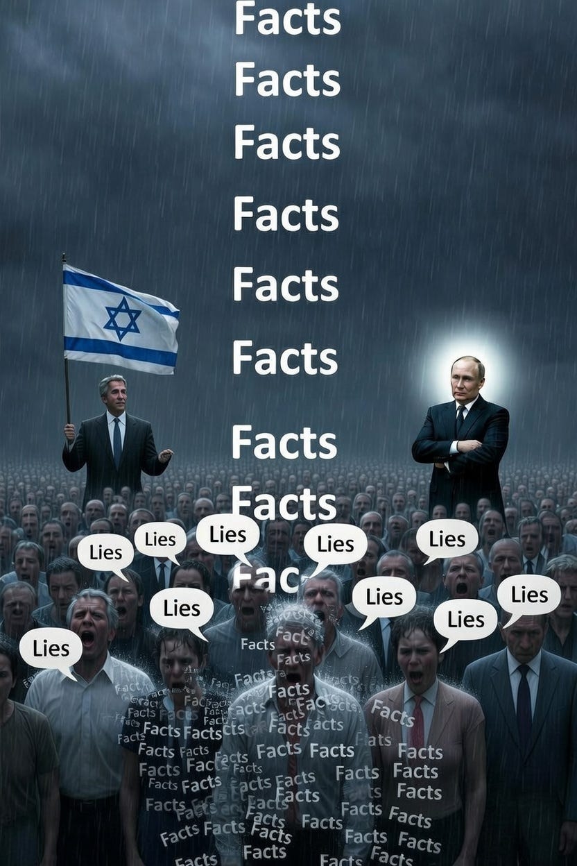 Western establishment figures have another, equal concern to that of protecting Israel from western populations realizing it is they, not the Russians who have been grossly interfering in their democracies. That is their concern to protect themselves through protecting their carefully manipulated reputations. The Epstein files have opened up their entire world to view and the deep levels of degradation and criminality that exists there. The fear of their exposure as degenerates equals their fear that their secrets in the Epstein files will damage Israeli influence. This could bring about the complete disposal of the entire sleaze-ridden establishment now running the West. Its desperate and patently obvious lies in trying to link the Israeli Epstein operation to Russia could not show this more clearly. They are in panic mode and blatant lies or about all such people at risk of being utterly exposed for what they are, have left.