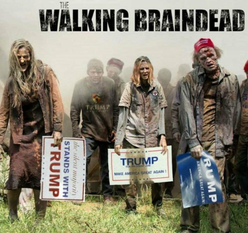 In recent years movies featuring zombies have been extremely popular and zombies and cultists have much in common. Maybe someone will feature Trump’s MAGA base in a remake of ‘The Village of the Damned’ where they are all locked together in a hive-mind, move in unison and show no human emotion The glowing eyes can be arranged later through CGI special effects. The fixed minds of Donald’s Demons are perfect for the thousand yard stare of complete emotional detachment from reality. Trump’s twisted logic will never wake them from their dream state. They are truly hooked.