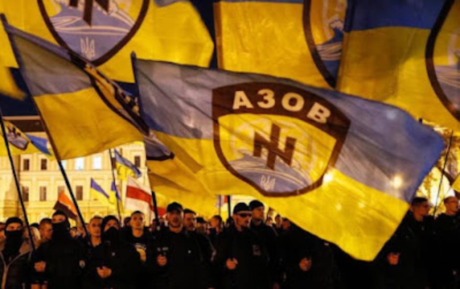 The Azov Battalion thugs are very much present in the war that is raging in Ukraine. Have them continued to be be lauded in the West, their t-shirts and other paraphernalia now on sale on Amazon with their crude swastika and Nazi black sun symbol, framed as noble patriots fighting for freedom and sovereignty and their resulting rise to even greater power will surely be one of the most foolish geopolitical acts ever seen.