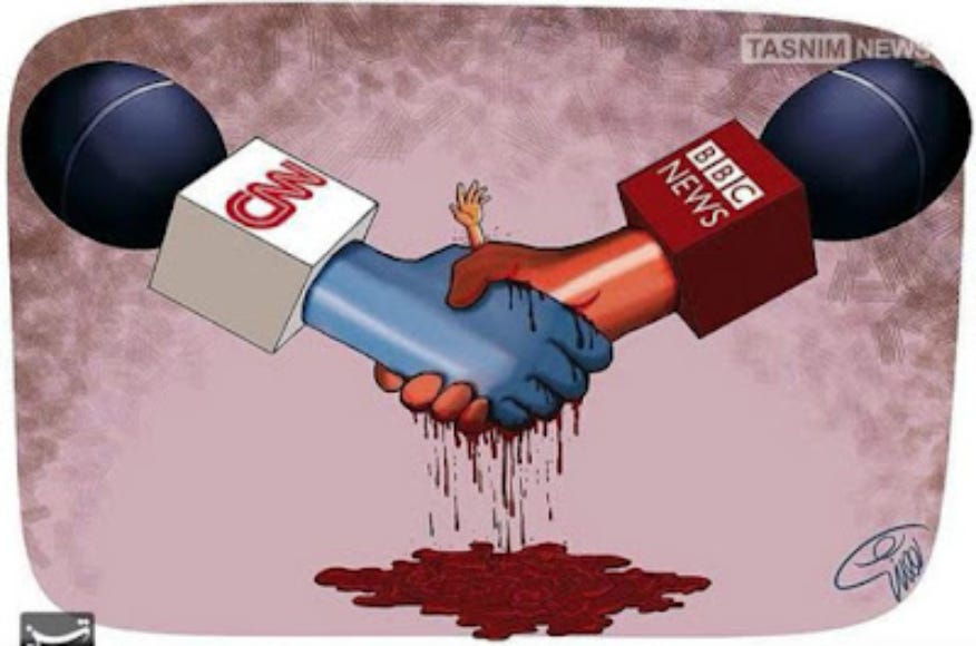 Television has for fifty years and more been the most powerful device for molding minds. With the inexorable move of elite media to the right in recent times, especially in the United States where public service broadcasting is in the extreme minority and corporations own the vast majority of news entities the output has become heavily biased in the interests of western states’ foreign policy objectives.